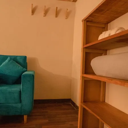El hotel Mama Green Hostal - Eco Andean Experience And Permaculture Farm - Vegetarian Breakfast ofrece comodidades en la habitación como un patio, un vestidor y zona de estar.